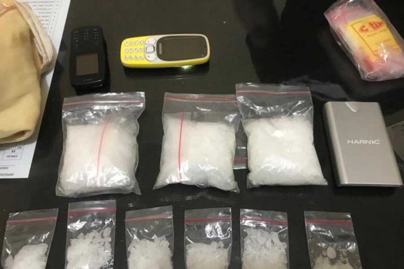 Saat dilakukan penggeledahan, ditemukan di bawah kursi dalam kamar pelaku barang bukti tiga paket besar sabu-sabu, enam paket sedang sabu-sabu (350 gram), dan satu unit timbangan digital.
