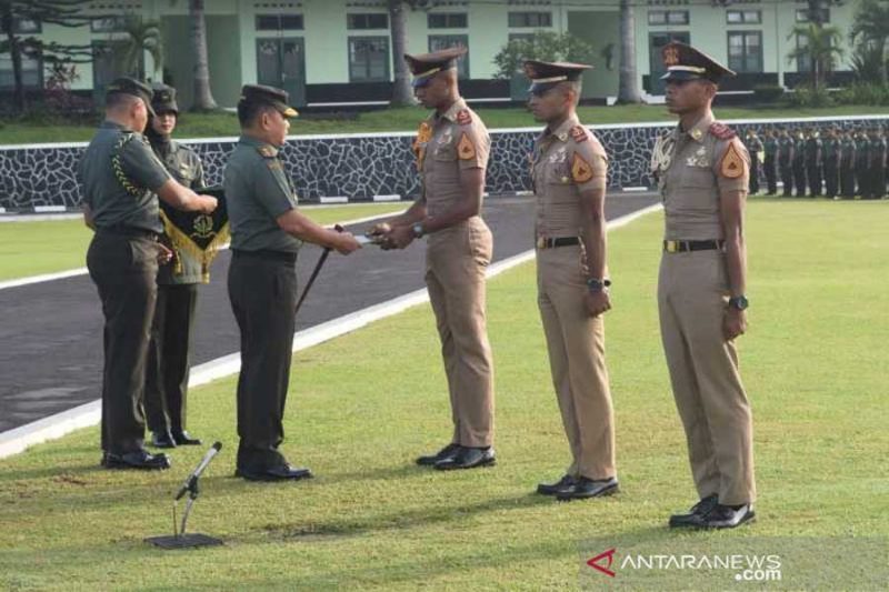 Pemberian penghargaan kepada Sermatutar Bima Pandu Kusuma Mahuse, Daniel Denis M. Nambrasar, dan Osvaldo Louis Vernando Micibaroe dilakukan Gubernur Akmil pada upacara penerimaan kembali dari cuti di Lapangan Pancasila Akmil Magelang, Jawa Tengah, Jumat (3/1/2020).