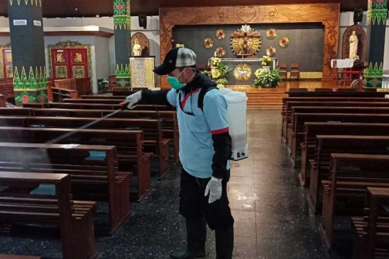 Kasubag Bina Mental dan Spiritual Bagian Kesra Setda Kabupaten Wonosobo, Harjanto di Wonosobo, Sabtu (21/3/2020), mengatakan hari ini petugas menyemprot Gereja Katholik Santo Paulus, Gereja Kristen Jawa, Klenteng Hok Ho Bio, dan Masjid Al Falah Sidomulyo.
