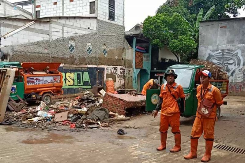 JAKARTA, Cakram.net – Petugas gabungan mengangkat puluhan ton sampah dari lokasi banjir di Kecamatan Kramat Jati, Jakarta Timur, melalui kegiatan K3 pada Ahad pagi.