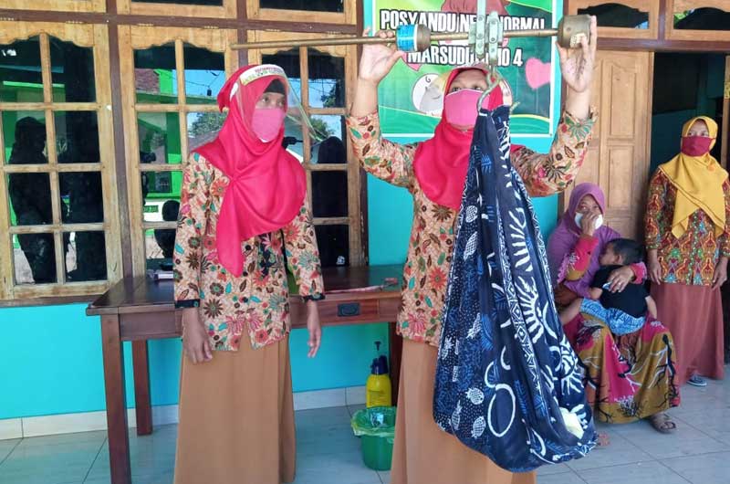 Untuk penimbangan balita, lanjut Ani, para ibu dibiasakan membawa sarung sendiri dari rumah. Sehingga tidak ada sarung timbangan bayi digunakan bersama-sama.