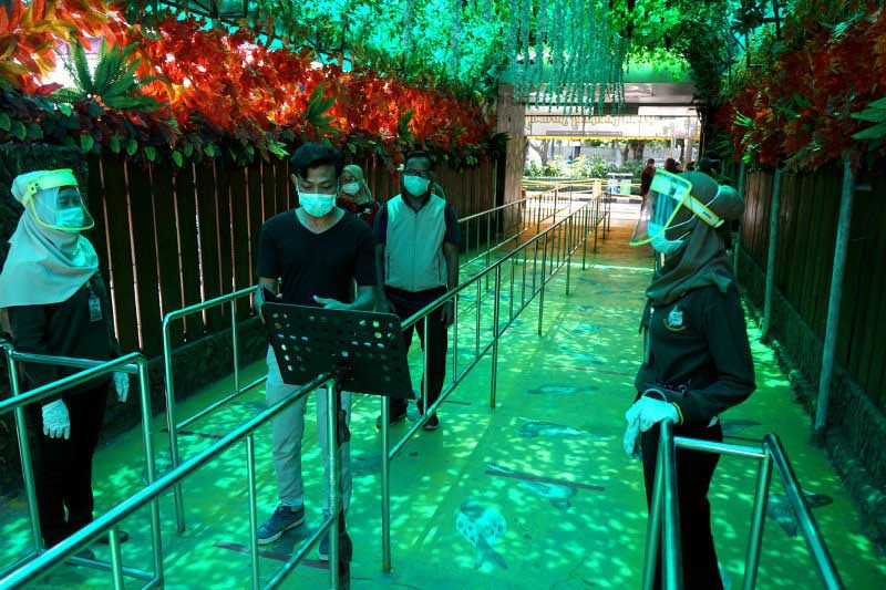 Tidak hanya itu, untuk menghindari terjadinya kerumunan, pengunjung diwajibkan mengikuti alur yang sudah ada. Bahkan saat melihat hewan pun pengunjung wajib berdiri pada tanda yang sudah tertera.