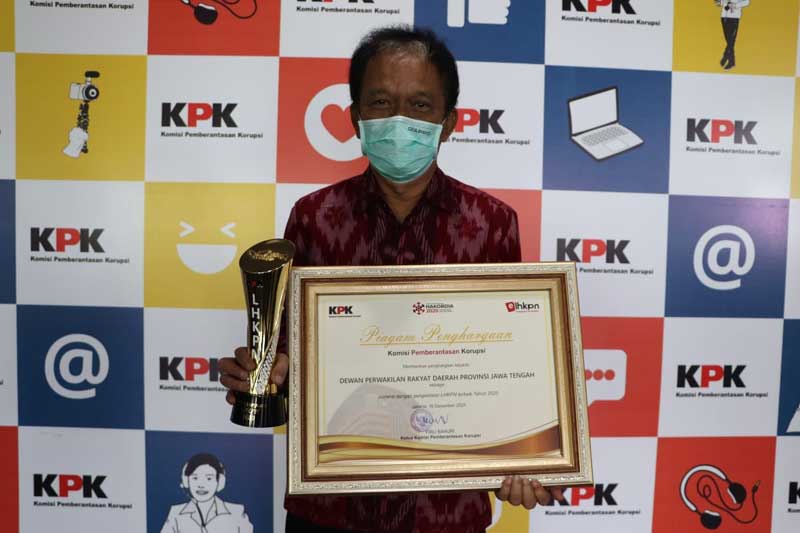 JAKARTA, Cakram.net – Komisi Pemberantasan Korupsi (KPK) memberikan penghargaan Laporan Hasil Kekayaan Penyelenggara Negara (LHKPN) Terbaik kepada DPRD Provinsi Jawa Tengah dalam acara Hari Antikorupsi Sedunia (Hakordia) 2020 di Gedung KPK Jalan HR Rasuna Said Jakarta, Selasa (22/12/2020). Penghargaan tersebut diserahkan oleh Wakil Ketua KPK Nurul Gufron kepada Ketua DPRD Provinsi Jateng Bambang Kusriyanto.