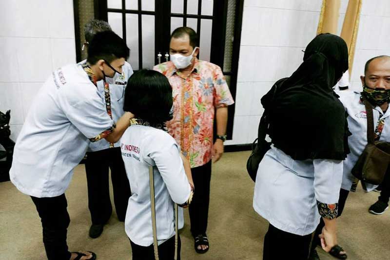 “Enam atlet sudah pasti lolos, dan sisanya optimis bisa berbuat banyak di seleksi,” ujarnya saat berpamitan dengan Bupati Semarang Ngesti Nugraha di ruang utama Rumah Dinas Bupati Semarang di Ungaran, Senin (22/3/2021) malam. Acara pamitan ini dihadiri pembina NPCI Kabupaten Semarang Adi Prasetyo, koordinator pelatih Mirza Sulaiman dan perwakilan atlet.