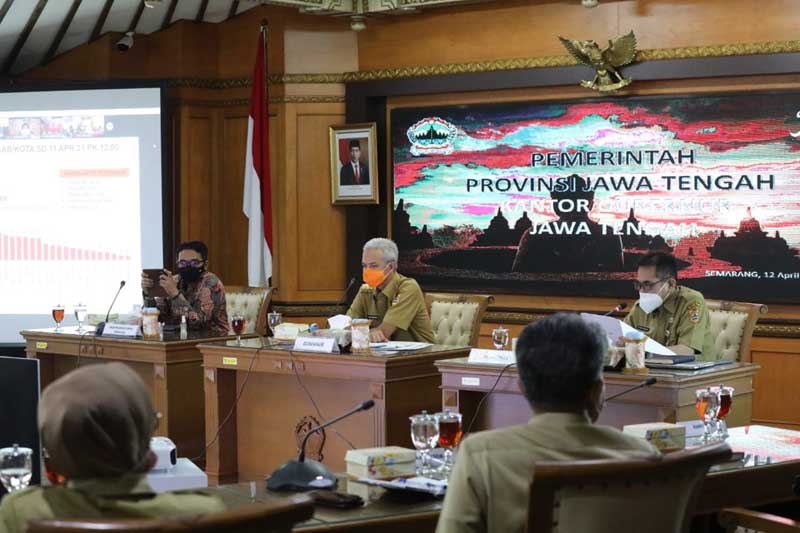 Hal itu disampaikan Ganjar usai memimpin Rapat Penanganan COVID-19 Jawa Tengah dan Larangan Mudik di ruang rapat gedung A kantor Pemprov Jateng, Senin (12/4/2021). Ganjar menegaskan, seluruh daerahnya seragam terkait pelarangan mudik.