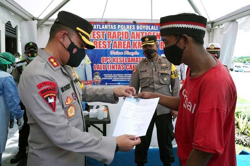 Pengamanan diawali dengan melaksanakan pemeriksaan tes swab antigen terhadap pengunjung yang memasuki wilayah Kabupaten Boyolali, terutama pengunjung yang berasal dari luar Kabupaten Boyolali.