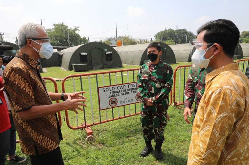 Hal itu disampaikan Ganjar saat mengecek rumah sakit darurat di Benteng Vastenburg Solo bersama Wali Kota Surakarta, Gibran Rakabuming Raka, Rabu 30 Juni 2021. Menurut Ganjar, rumah sakit darurat adalah cara paling tepat untuk penanganan lonjakan kasus Covid-19.
