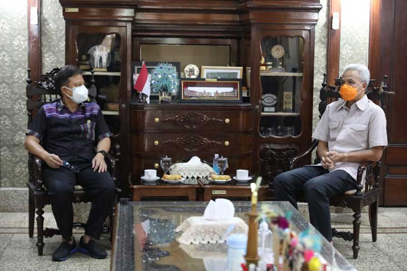 SEMARANG, Cakram.net – Menteri Kesehatan, Budi Gunadi Sadikin secara khusus menemui Gubernur Jawa Tengah, Ganjar Pranowo di rumah dinas Puri Gedeh Semarang, Sabtu 5 Juni 2021. Secara langsung, Budi meminta Ganjar melakukan advokasi sekaligus pendampingan pada Bupati Kudus, Hartopo dalam penanganan lonjakan Covid-19.