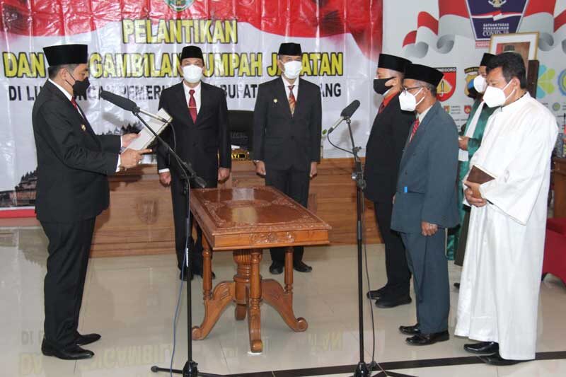 MAGELANG, Cakram.net – Bupati Magelang Zaenal Arifin melantik dan mengambil sumpah janji 43 pejabat Pimpinan Tinggi Pratama dan Pejabat Administrator di Lingkungan Pemerintah Kabupaten Magelang secara secara virtual dari Rumah Dinas Bupati Magelang, Kamis 29 Juli 2021.