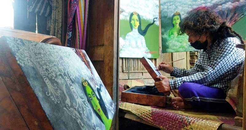 MAGELANG, Cakram.net – Pandemi Covid-19 disikapi kreatif oleh seorang seniman lereng barat Gunung Merapi Kabupaten Magelang. Uniknya bukan di atas kanvas, namun ia melukis di koper kuno yang menjadi simbol bekal menghadap Sang Khalik ketika Covid-19 masih mewabah.