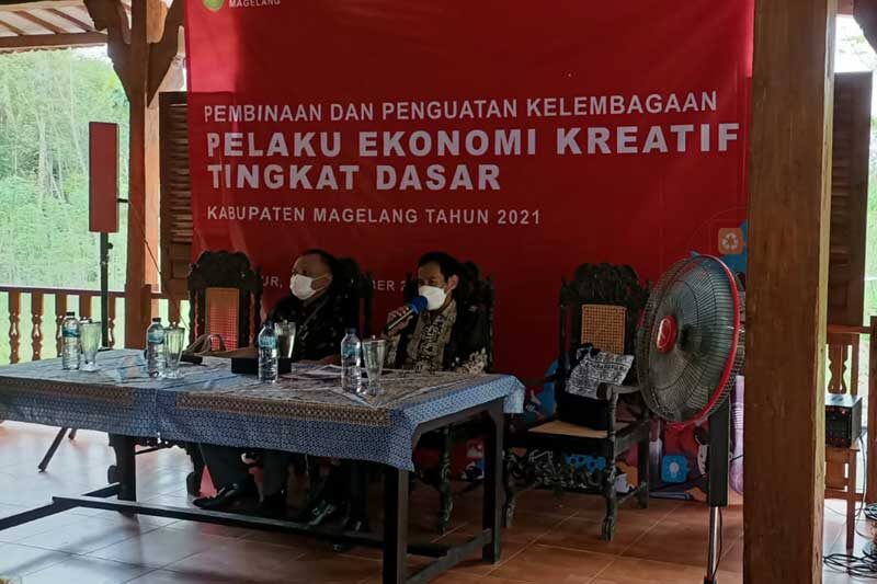 Demikian disampaikan Kepala Dinas Kominfo Kabupaten Magelang, Endah Endra Wacana saat menjadi narasumber Pembinaan dan Penguatan Kelembagaan Pelaku Ekonomi Kreatif (Ekraf) yang digelar Disparpora Kabupaten Magelang di Joglo Panglipuran Borobudur, Kamis 28 Oktober 2021.