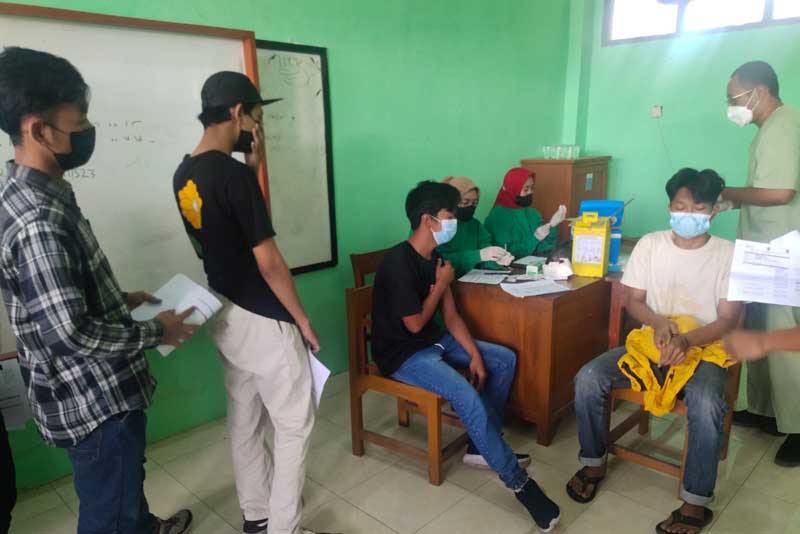 MAGELANG, Cakram.net – Untuk mendukung pembelajaran tatap muka (PTM), Polres Magelang menggelar vaksinasi Covid-19 di SMK Maarif Salam pada Kamis 7 Oktober 2021. Sasaran vaksinasi di sekolah ini adalah para siswa, pendidik dan karyawan sebanyak 235 orang, namun hanya 232 yang berhasil divaksinasi sementara 3 orang ditunda karena alasan medis.
