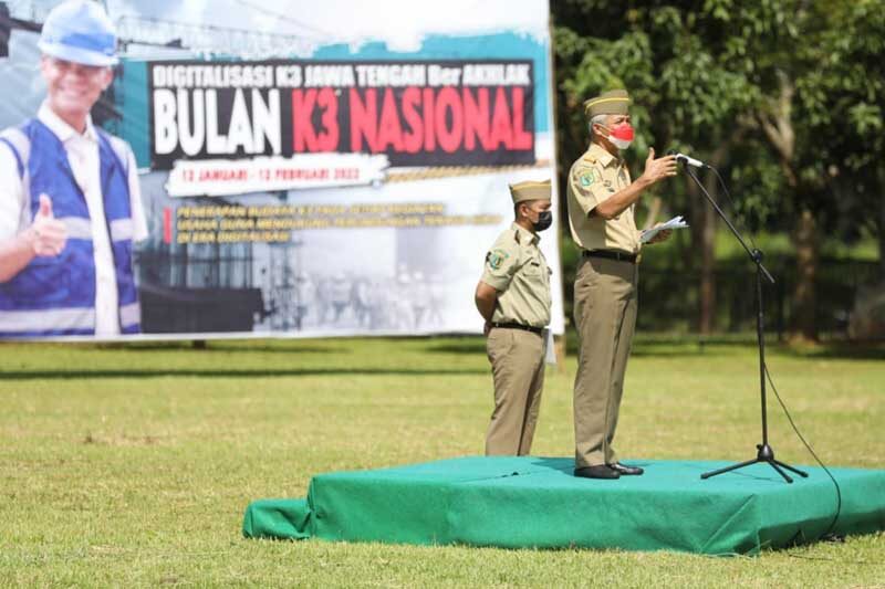 “Ini jadi perhatian kita agar seluruh tempat kerja kita pastikan aman dan nyaman,” kata Ganjar saat apel.