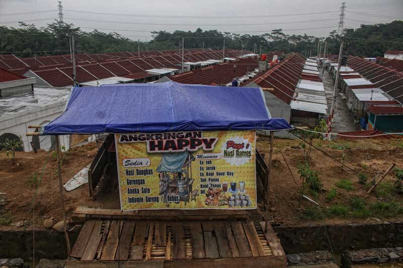 Warga memanfaatkan lahan yang masih kosong untuk jualan angkringan di rumah bersubsidi di Perum Graha Raya 3 Kliris Boja, Kabupaten Kendal, Jawa Tengah, Kamis 17 Februari 2022. Bank BTN terus berkontribusi bagi Rakyat Indonesia melalui KPR BTN rumah untuk rakyat.Bank BTN dan pemerintah memberikan rumah yang layak bagi seluruh masyarakat melalui KPR BTN khususnya untuk masyarakat Berpenghasilan Rendah (MBR). Foto: Cakram.net/Ahmad Samsudin
