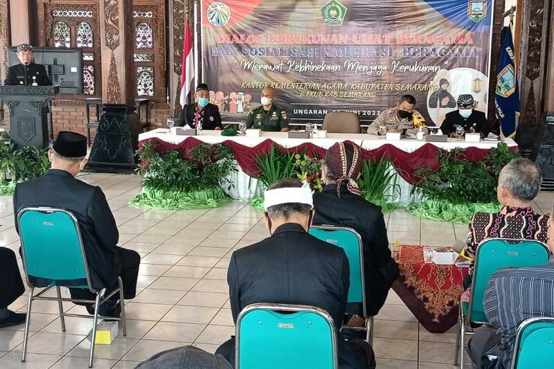 “Secara prinsip moderasi beragama akan menekan paham radikalisme dan mendukung kerukunan antar umat beragama,” kata Ketua FKUB H Sinwani saat acara dialog kerukunan umat beragama dan sosialisasi moderasi beragama di Pendapa Rumah Dinas Bupati Semarang di Ungaran, Rabu 15 Juni 2022.