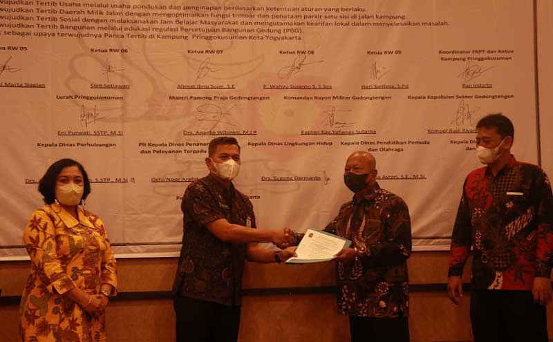 YOGYAKARTA, Cakram.net – Kampung Pringgokusuman Kemantren Gedongtengen Yogyakarta mencanangkan Gerakan Kampung Panca Tertib (Kampung Panertib) di Royal Darmo Hotel, Selasa 27 Juli 2022. Deklarasi Kampung Panertib kali ini merupakan yang ke-121 di Kota Yogyakarta.