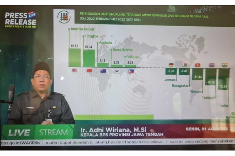 “Kalau dilihat dari m-to-m nilai ekspor di Jateng naik 43,76 persen pada Juni 2022 dan dicatatan y-to-y nilai ekspor di Jateng juga naik 31,23 persen. itu dari ekspor migas dan non migas,” ujarnya, Senin 1 Agustus 2022.