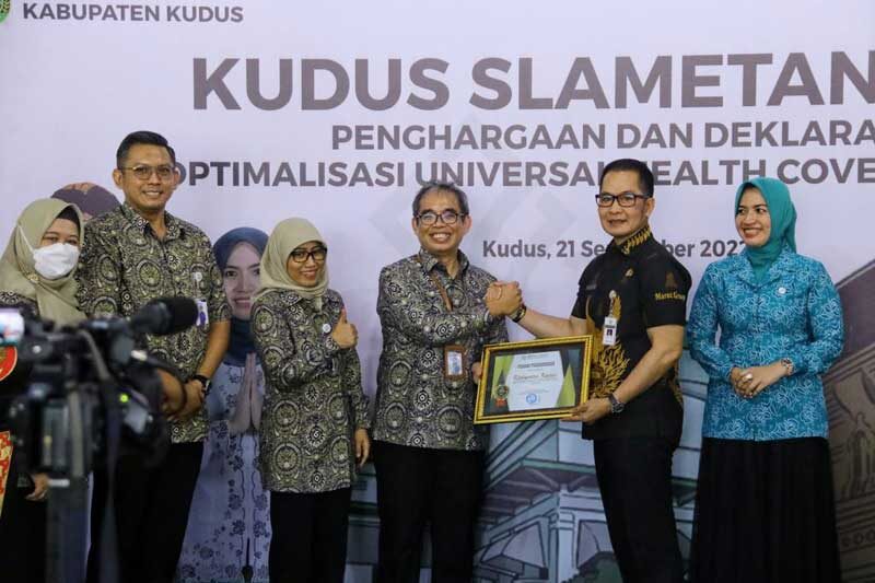 KUDUS, Cakram.net – Pemerintah Kabupaten Kudus menerima Penghargaan Universal Health Coverage (UHC) dari BPJS Kesehatan. Penghargaan diberikan karena Kabupaten Kudus dinilai memiliki komitmen tinggi terhadap kualitas kesehatan, terhadap masyarakatnya.