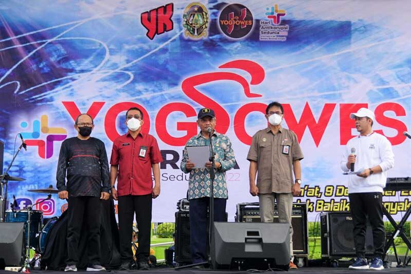 Penjabat Wali Kota Yogyakarta Sumadi mengajak ASN Pemkot Yogyakarta dan masyarakat yang hadir dalam rangkaian kegiatan peringatan Hakordia 2022 untuk bersama-sama melakukan penguatan komitmen antikorupsi di Kota Yogyakarta. Termasuk mengajak masyarakat untuk berperan aktif melaporkan apabila ada indikasi tindak korupsi.