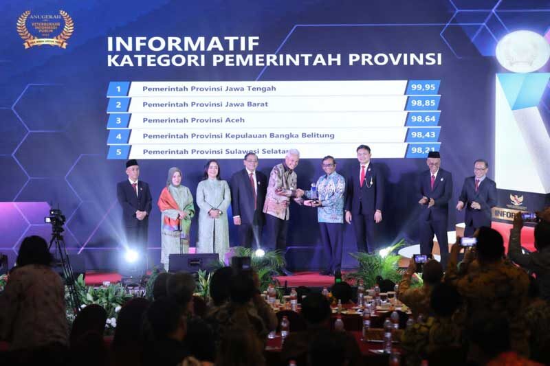 Jawa Tengah mendapat peringkat pertama provinsi keterbukaan informasi publik dengan nilai 99,95. Disusul Provinsi Jawa Barat dengan nilai 98,85 dan Provinsi Aceh dengan nilai 98,64.