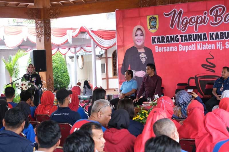 KLATEN, Cakram.net – Puluhan pengurus Karang Taruna tingkat kecamatan dan kabupaten se-Kabupaten Klaten mengikuti acara ‘Ngopi Bareng’ bersama Bupati Klaten, Sri Mulyani di Rumah Dinas Bupati Klaten, Jumat 27 Januari 2023.