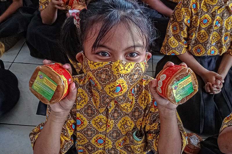 Sejumlah siswa mengikuti kegiatan dalam pembagian kue keranjang yang telah disediakan pihak sekolah di SD Kuncup Melati, Kota Semarang, Jawa Tengah, Kamis 19 Januari 2023. Kue keranjang dibagikan secara gratis ini merupakan tradisi tahunan untuk menyambut tahun baru Imlek 2574. Foto: Cakram.net/Ahmad Samsudin