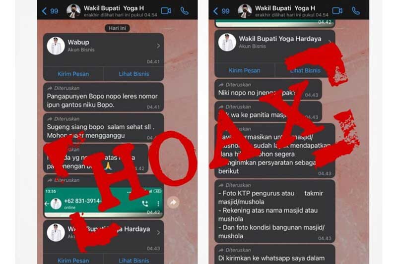 KLATEN, Cakram.net – Nama Wakil Bupati (Wabup) Klaten, Yoga Hardaya kembali dicatut pelaku penipuan yang menyasar warga Klaten melalui aplikasi perpesanan WhatApps. Masyarakat dihimbau untuk waspada dan selalu kroscek kebenaran informasi yang diterima.