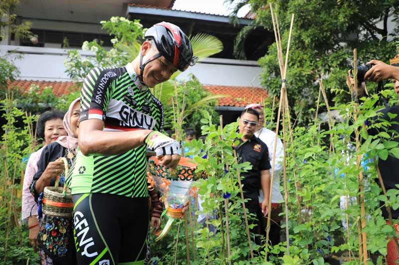 “Kami melihat kreativitas anak dan guru, di mana anak-anak diajari pengalaman bagus. Satu pengalaman menanam dan memelihara. Maka mereka mengolah (tanaman telang),” ujar Ganjar.