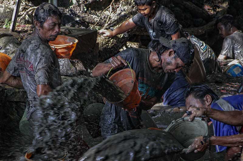 Warga melakukan resik-resik sendang atau pembersihan mata air dalam tradisi Sadranan di Sendang Gede Pucung, Pudakpayung, Semarang, Jawa Tengah, Jumat 17 Maret 2023. Tradisi turun temurun membersihkan mata air dilanjutkan berdoa dan makan bersama tersebut sebagai rasa syukur warga setempat kepada Tuhan YME atas limpahan rezeki sekaligus simbol penyucian desa dalam rangka menyambut bulan suci Ramadan. Foto: Cakram.net/Ahmad Samsudin