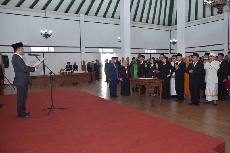 Bupati Boyolali, M. Said Hidayat yang melantik mengucapkan selamat atas pelantikan dan pengambilan sumpah jabatan bagi pejabat fungsional.