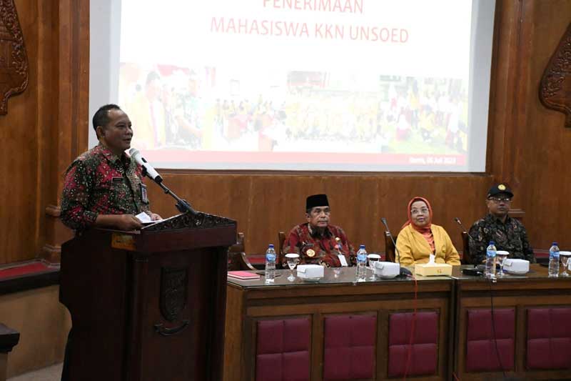 PURBALINGGA, Cakram.net – Plh Bupati Purbalingga H Sudono secara resmi menerima 296 mahasiswa kuliah kerja nyata (KKN) Universitas Jenderal Soedirman (Unsoed) Purwokerto untuk ditempatkan di Purbalingga. Ia mengajak agar mahasiswa KKN ini bisa melaksanakan tugas sebagaimana tema kali ini yaitu Peningkatan Pemberdayaan Ekonomi Kerakyatan Melalui Pemberdayaan UMKM dan Bumdes dalam Rangka Penanggulangan Kemiskinan.