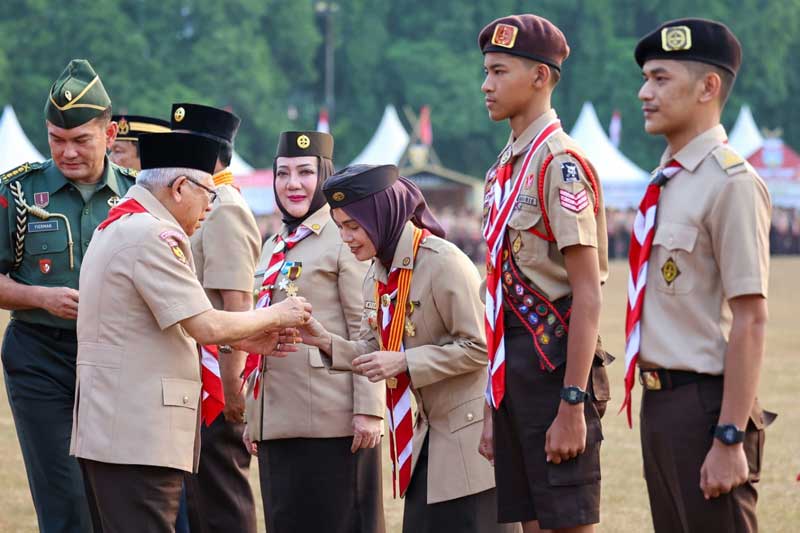 JAKARTA, Cakram.net – Ketua Kwarda Jawa Tengah Siti Atikoh Ganjar Pranowo menerima penghargaan Lencana Karya Bakti di peringatan Hari Pramuka ke-62. Penghargaan diserahkan langsung oleh Wakil Ketua Majelis Pembimbing Nasional Pramuka, KH Ma’ruf Amin.