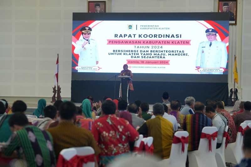 KLATEN, Cakram.net – Bupati Klaten, Sri Mulyani dalam Rapat Koordinasi (Rakor) Pengawasan Inspektorat Kabupaten Klaten mencanangkan 77 Sekolah Dasar (SD) Berintegritas dan 31 Desa Antikorupsi di Klaten.