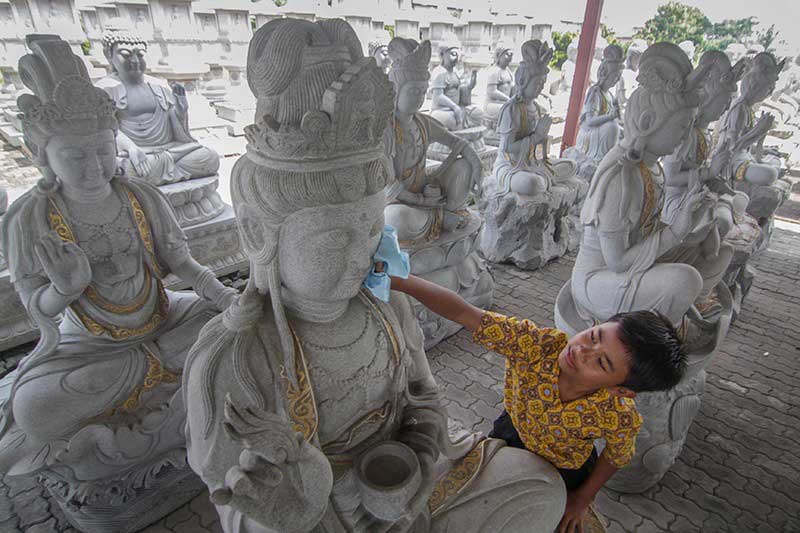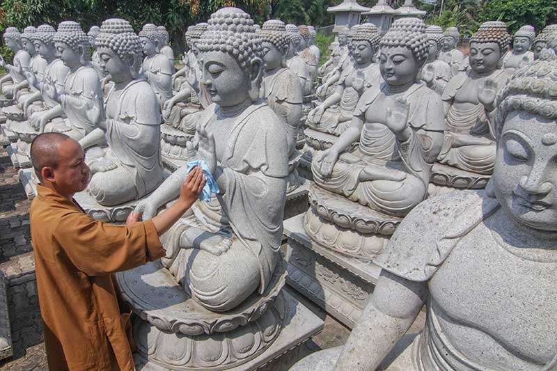 Pembersihan Patung Buddha di Vihara Mahavira Graha Semarang