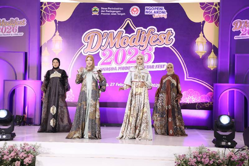 SEMARANG, Cakram.net – Aksi tak biasa ditunjukkan Ketua Dewan Kerajinan Nasional Daerah (Dekranasda) Provinsi Jawa Tengah, Nawal Arafah Yasin, bersama Ketua Dekranasda 35 Kabupaten/ Kota se-Jawa Tengah. Para istri kepala daerah tersebut menjelma menjadi model dadakan dalam ajang Dekranasda Modest & Iftar Festival (D’Modifest) 2026 di Atrium The Park Mall, Kota Semarang, Sabtu 28 Februari 2026. Tampak pula sejumlah Ketua Organisasi Wanita.