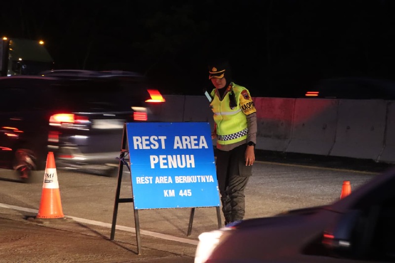 Kapolres Semarang, AKBP Ratna Quratul Ainy, saat memantau langsung situasi di Rest Area 456 B, mengonfirmasi bahwa peningkatan arus sudah terasa sejak siang hari.
